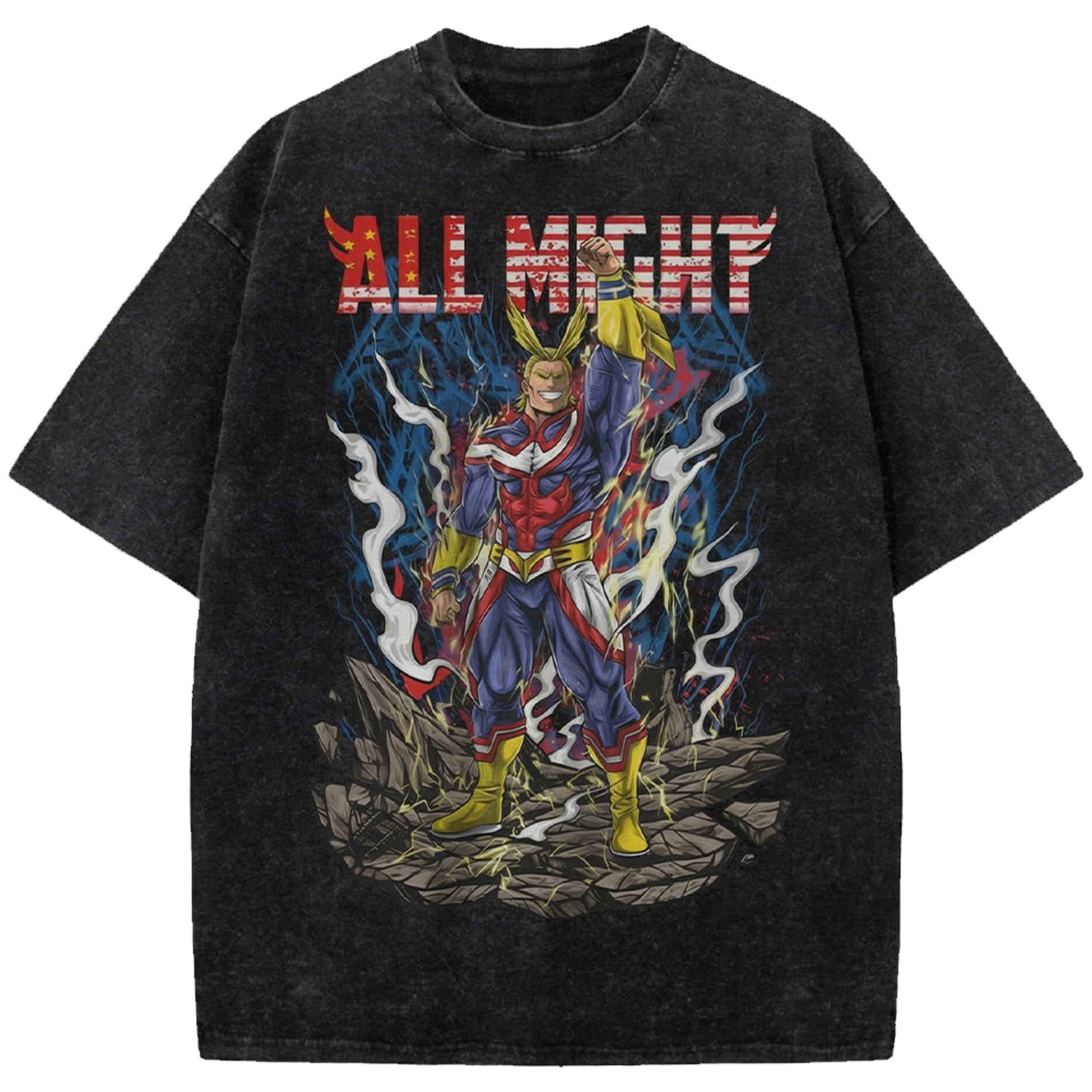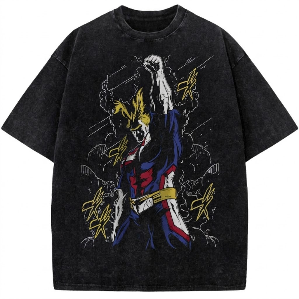 All Might Anime Vintage Washed Shirt, Toshinori Yagi Manga Streetwear T-Shirt Japanese Distressed Oversized Tee