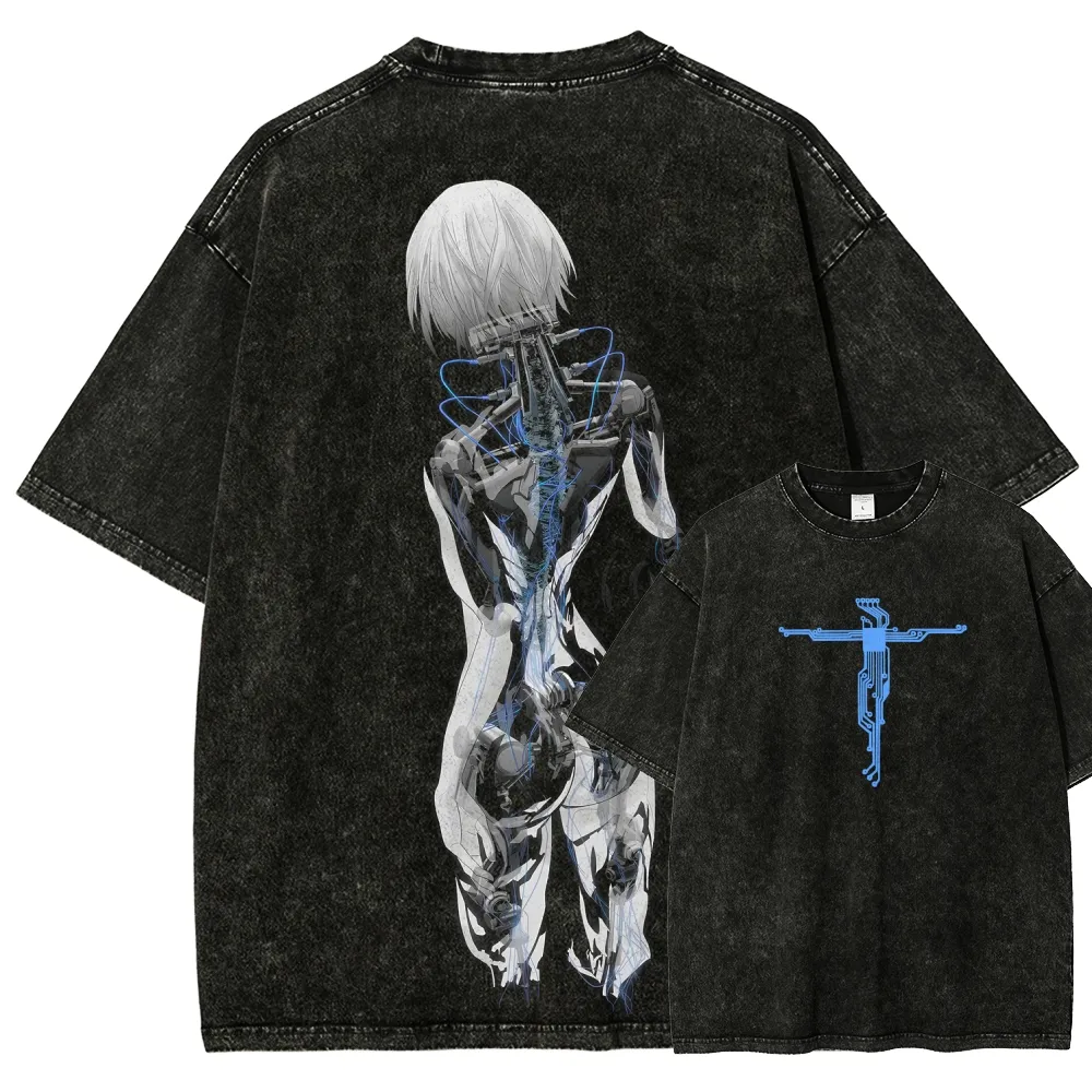 Cyberpunk Anime Vintage Washed T-Shirt, Futuristic Android Anime Graphic Tee
