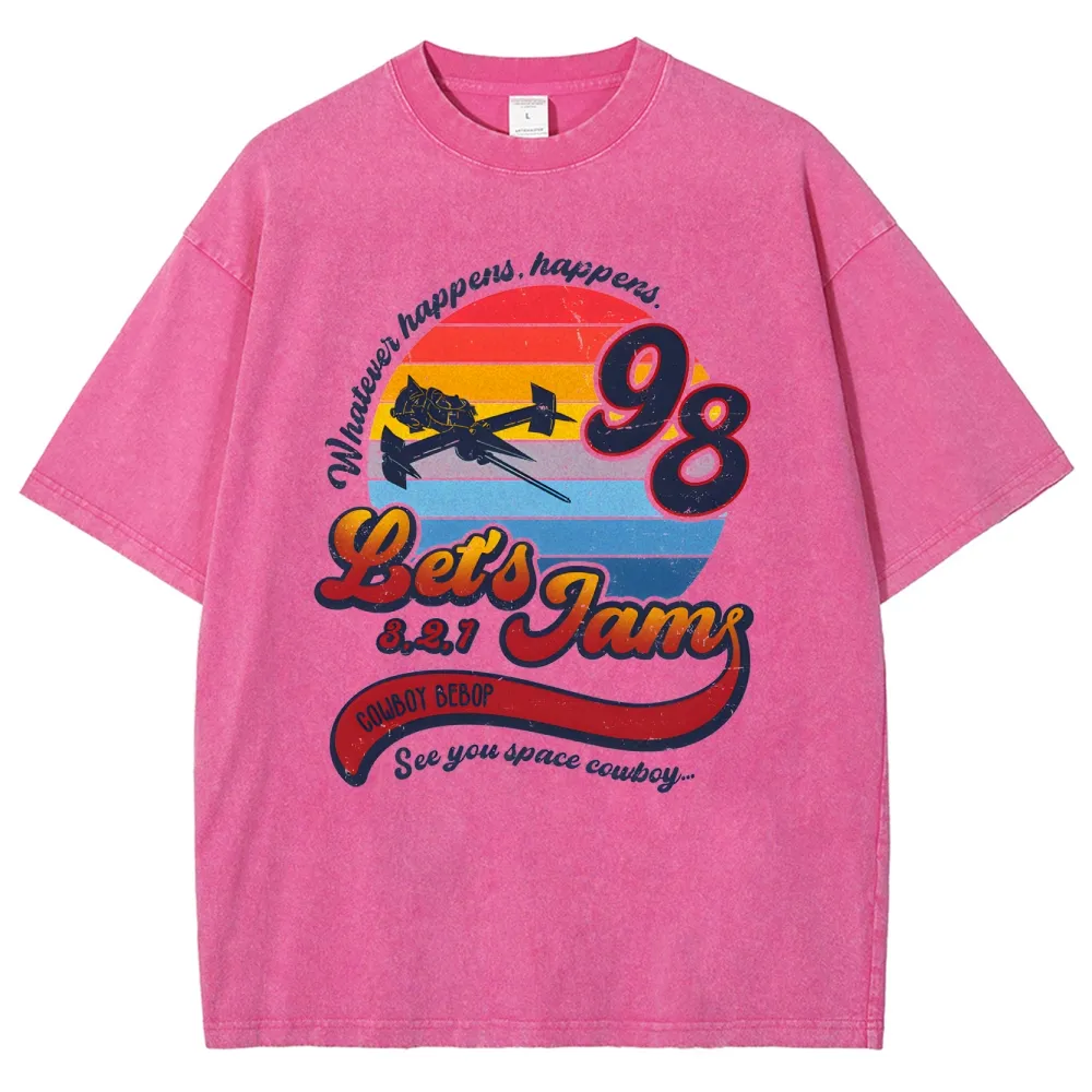 Cowboy Bebop Let’s Jam Anime Vintage Washed Tee Oversize Anime Streetwear Graphic Shirt