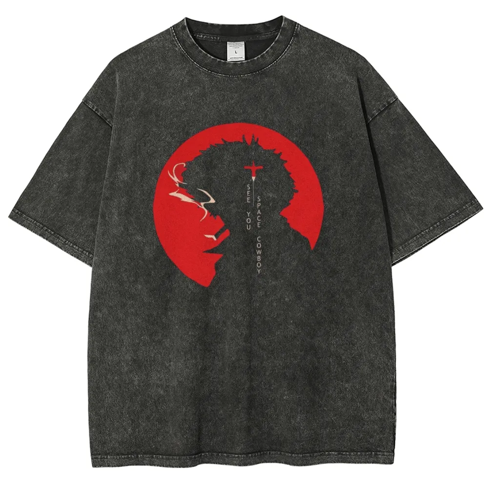 Cowboy Bebop Red Sun Silhouette Anime Vintage Wash Tee Oversize Streetwear