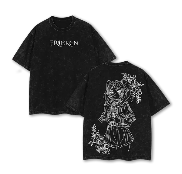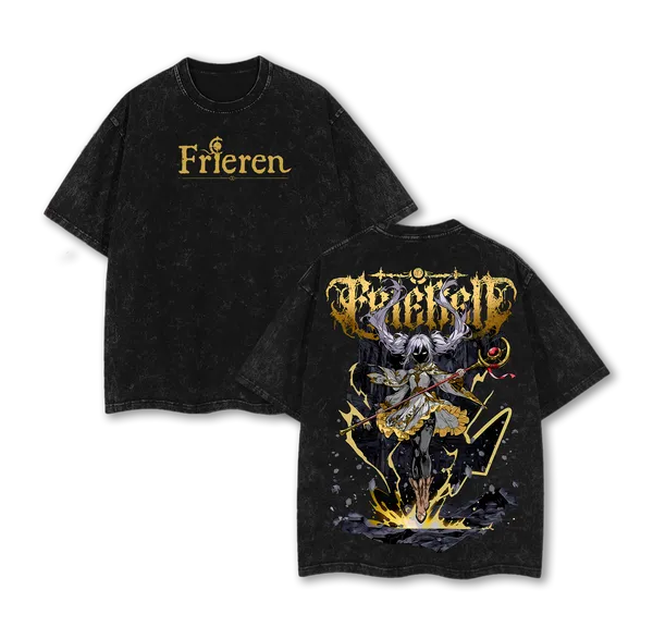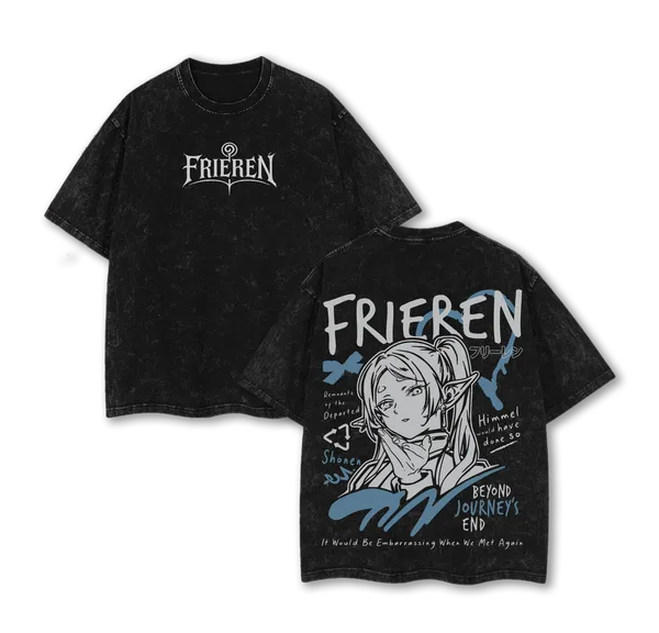 Frieren Beyond Journey’s End Elf Mage Anime Acid Washed Oversized Cotton Anime T-Shirt Graphic Tee