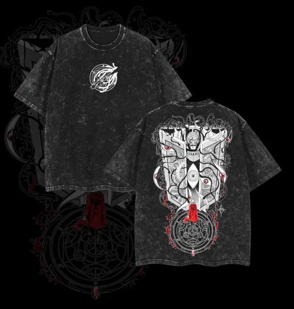 Fullmetal Alchemist Gate of Truth Anime Vintage Washed T-Shirt Japanese Manga Graphic Tee Streetwear