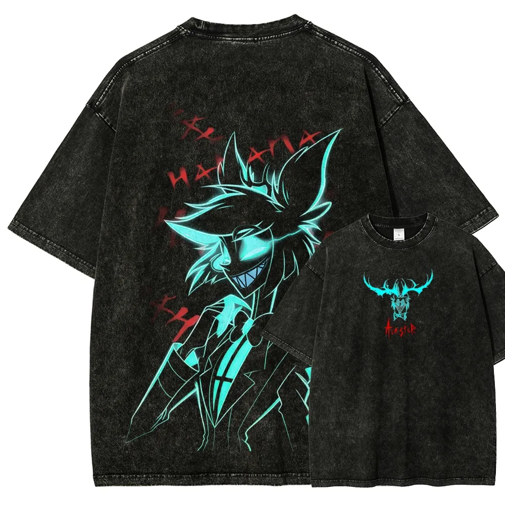 Alastor Hazbin Hotel Vintage Washed T-Shirt, Radio Demon Anime Cartoon Graphic Tee
