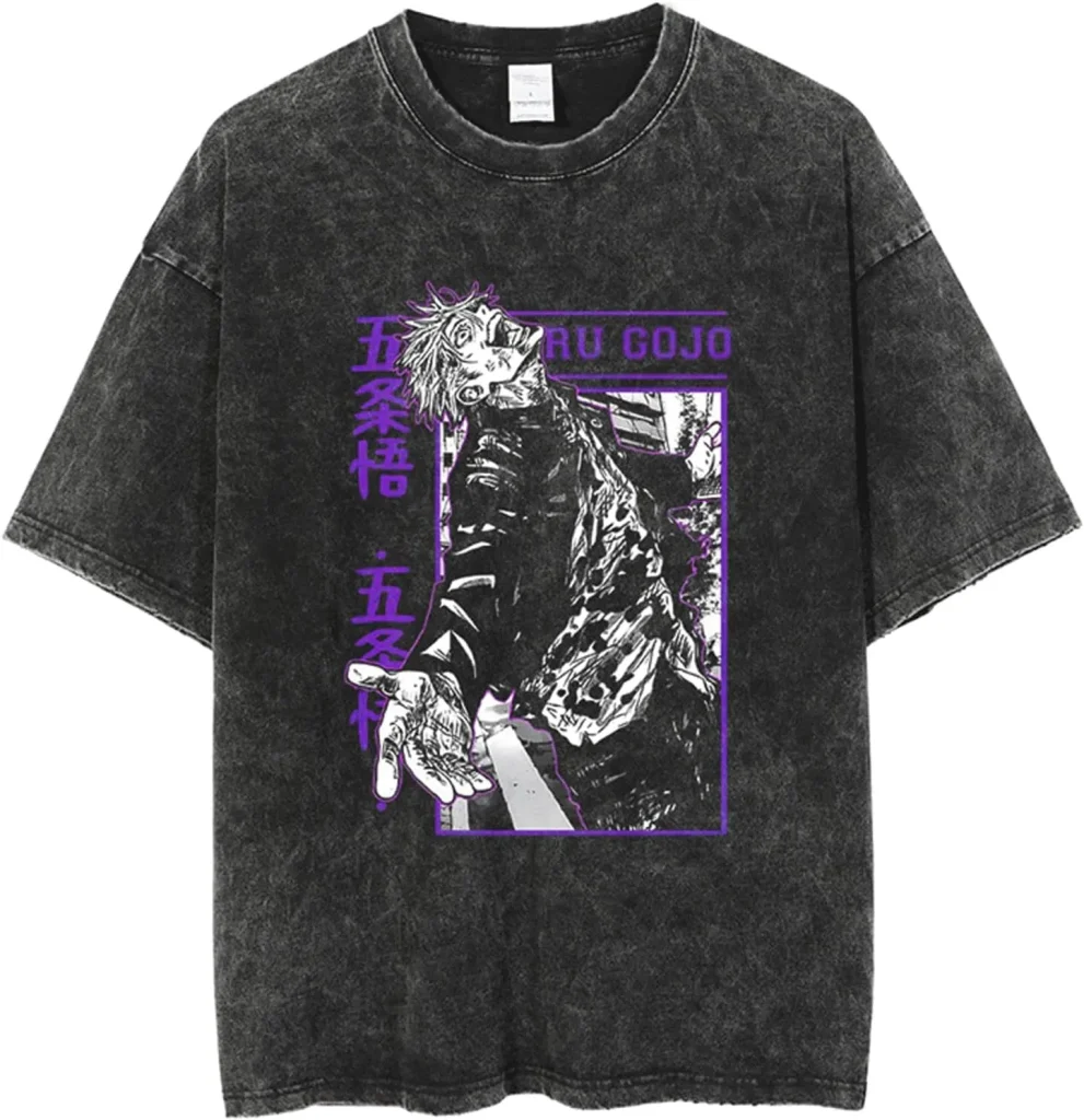 Gojo Satoru Jujutsu Kaisen Vintage Washed Oversized Anime Manga Streetwear Graphic T-Shirt