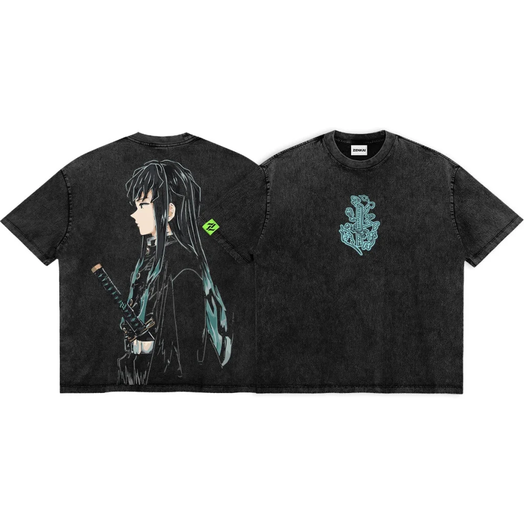 Muichiro Tokito Demon Slayer Vintage Washed T-Shirt – Anime Heavyweight Oversized Cotton Tee, Japanese Streetwear Manga Shirt