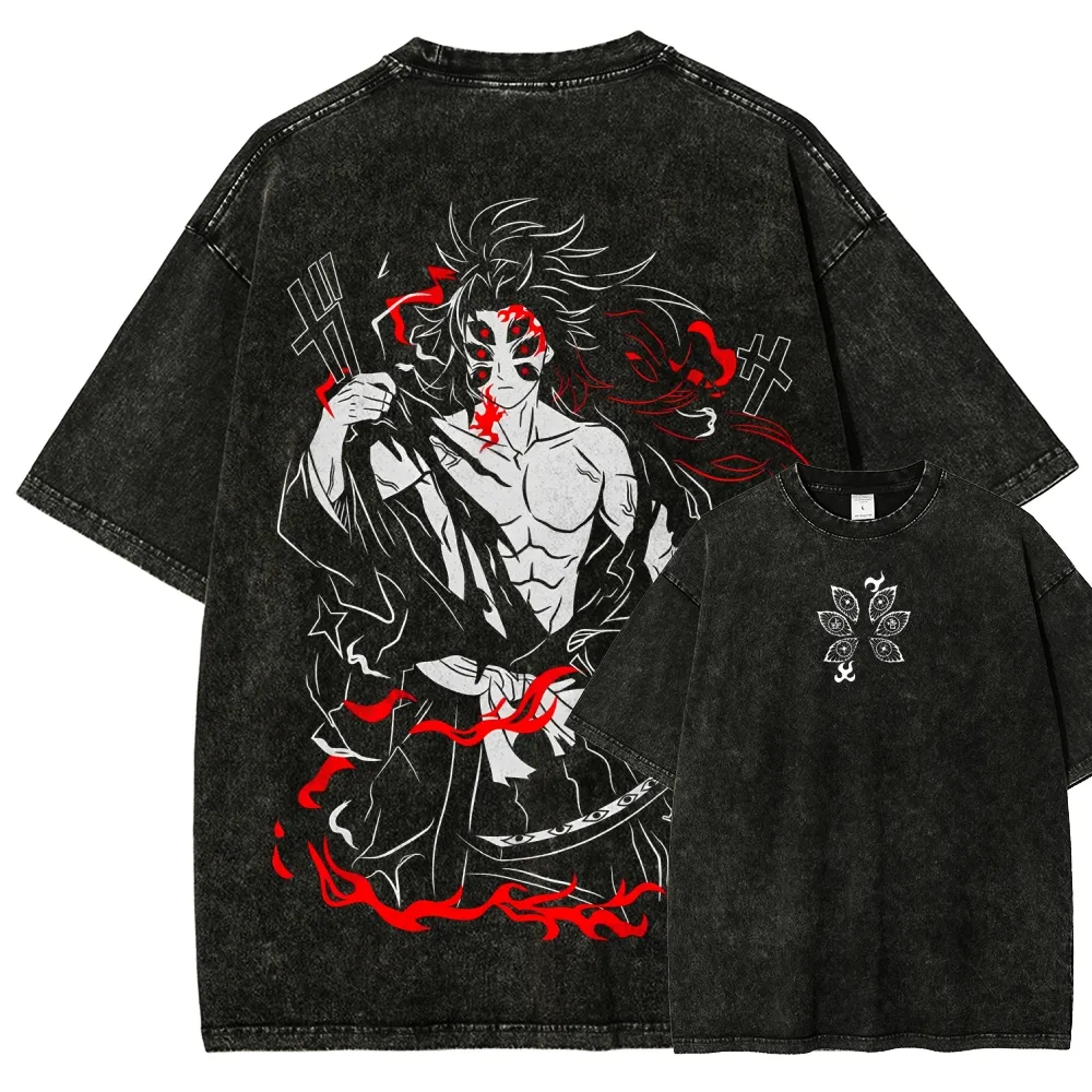Six Eyes Demon Samurai Anime Washed T-Shirt, Dark Anime Streetwear Graphic