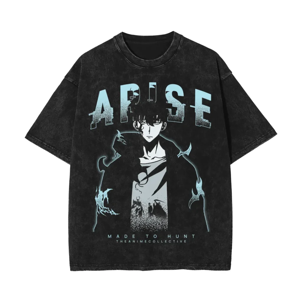 Solo Leveling Anime Sung Jin Woo Arise Shadow Monarch V2 Vintage Washed Oversized Graphic T-Shirt
