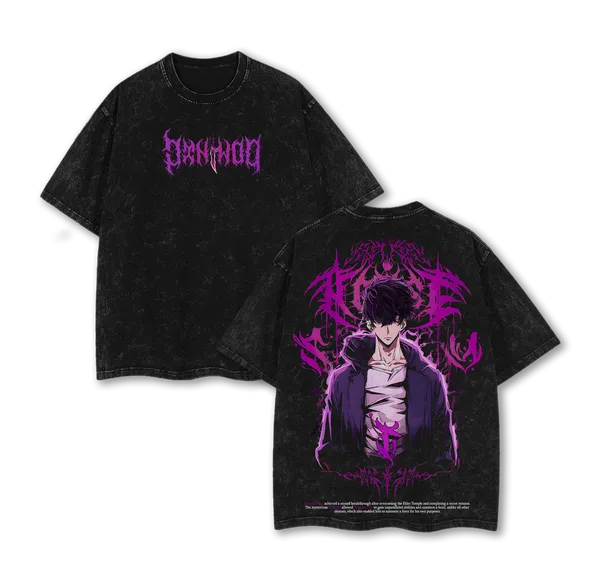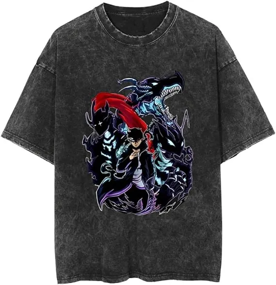 Solo Leveling Sung Jin Woo Shadow Monarch Anime Vintage Washed Oversized Manga Graphic T-Shirt