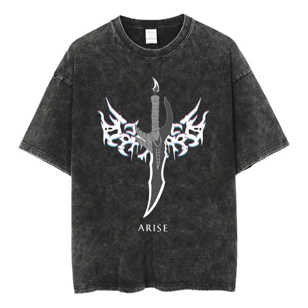 Solo Leveling Jin-Woo Graphic T-Shirt Vintage Washed Anime Tee Shadow Monarch Arise Aesthetic Shirt
