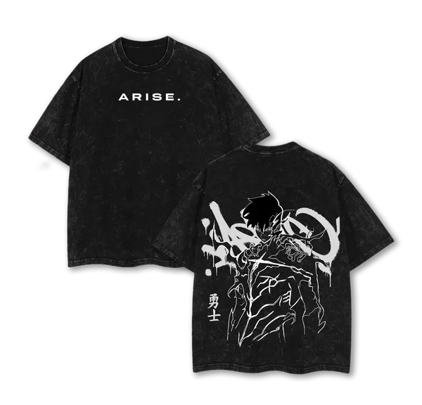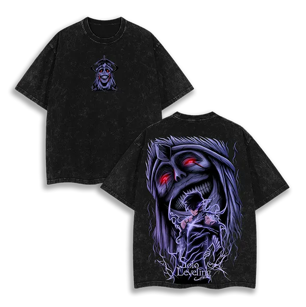 Sung Jin-Woo Solo Leveling Shadow Monarch Vintage Washed Oversized Anime T-Shirt Graphic Tee