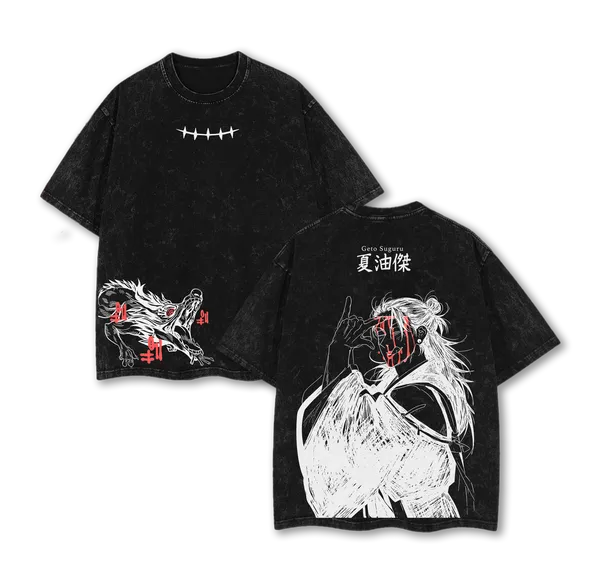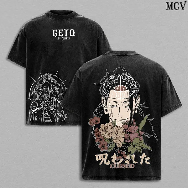 Suguru Geto Jujutsu Kaisen Cursed Spirit Manipulation Double Printed Front Back Vintage Washed Oversized Anime T-Shirt