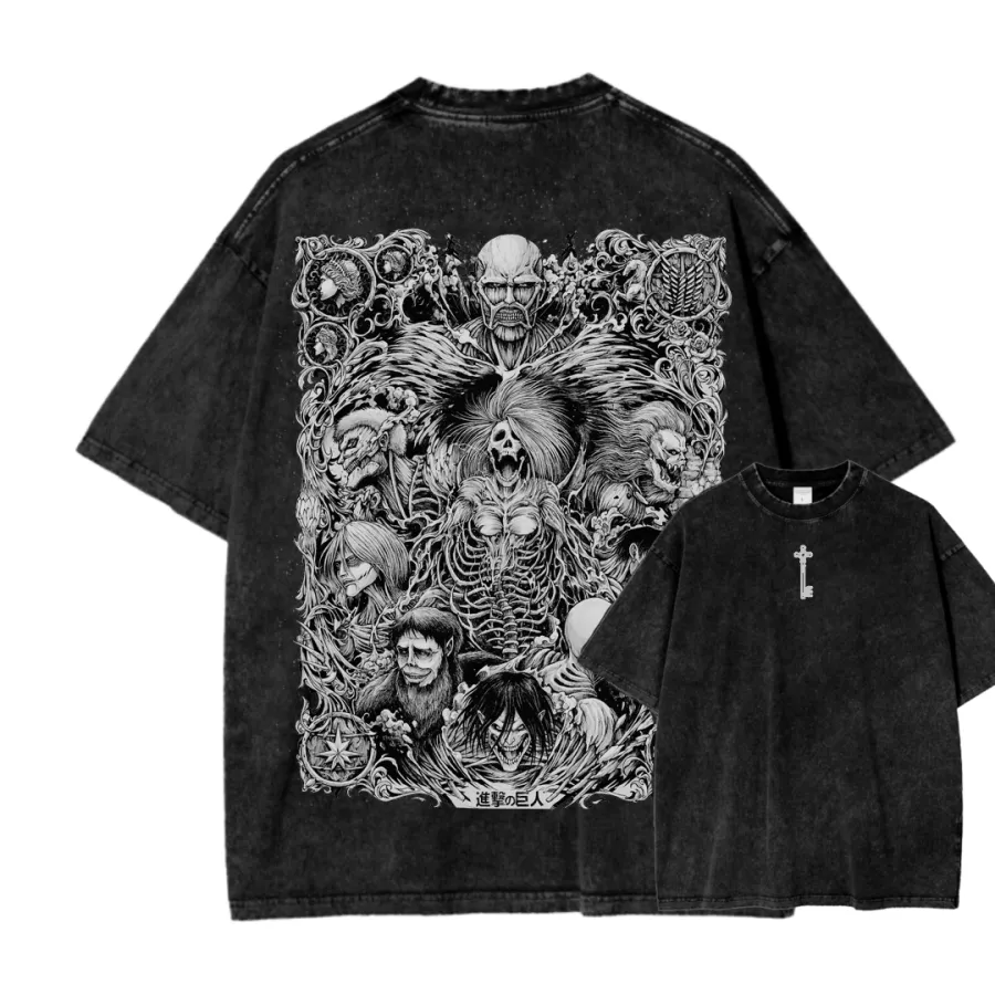 Attack On Titan IV Anime Acid Wash T-Shirt – Vintage Graphic Streetwear Tee
