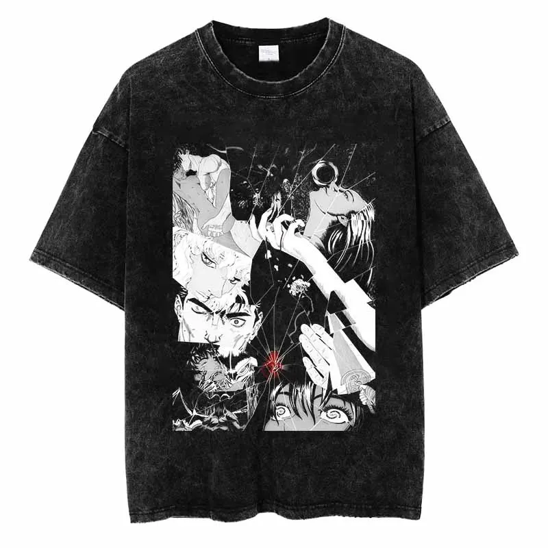 Vintage Berserk Guts T-Shirt – Washed Black Anime Graphic Tee