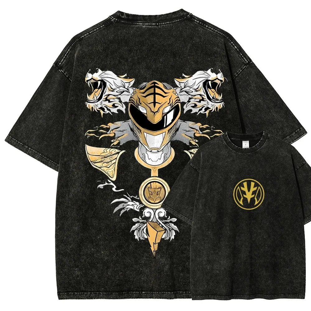 Vintage White Ranger Anime Washed Tee Retro 90s Streetwear Shirt