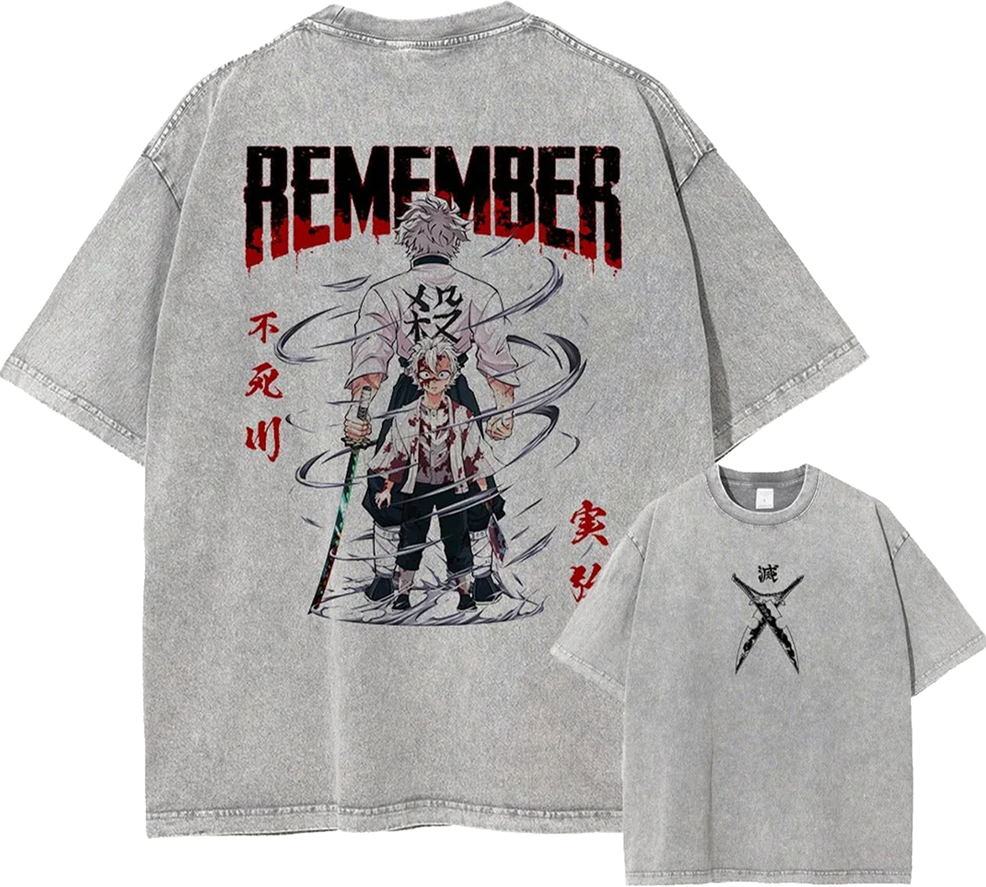 Anime Clothing Demon Slayer Sanemi Art Oversized Heavyweight Washed T-Shirt, Manga Vintage Streetwear Graphic Tee