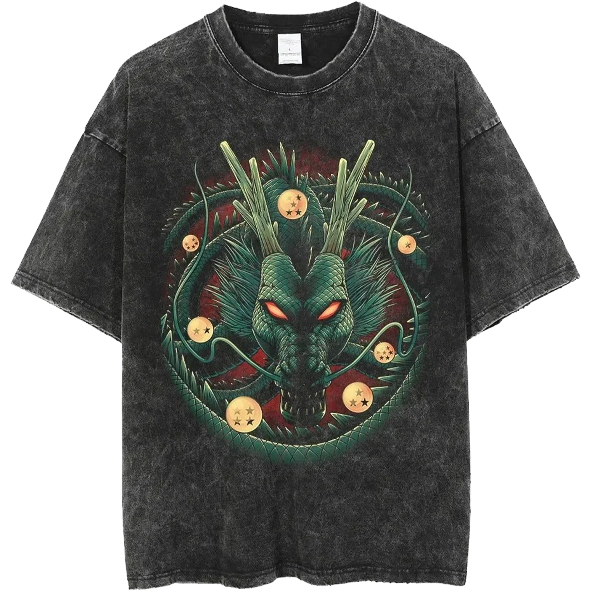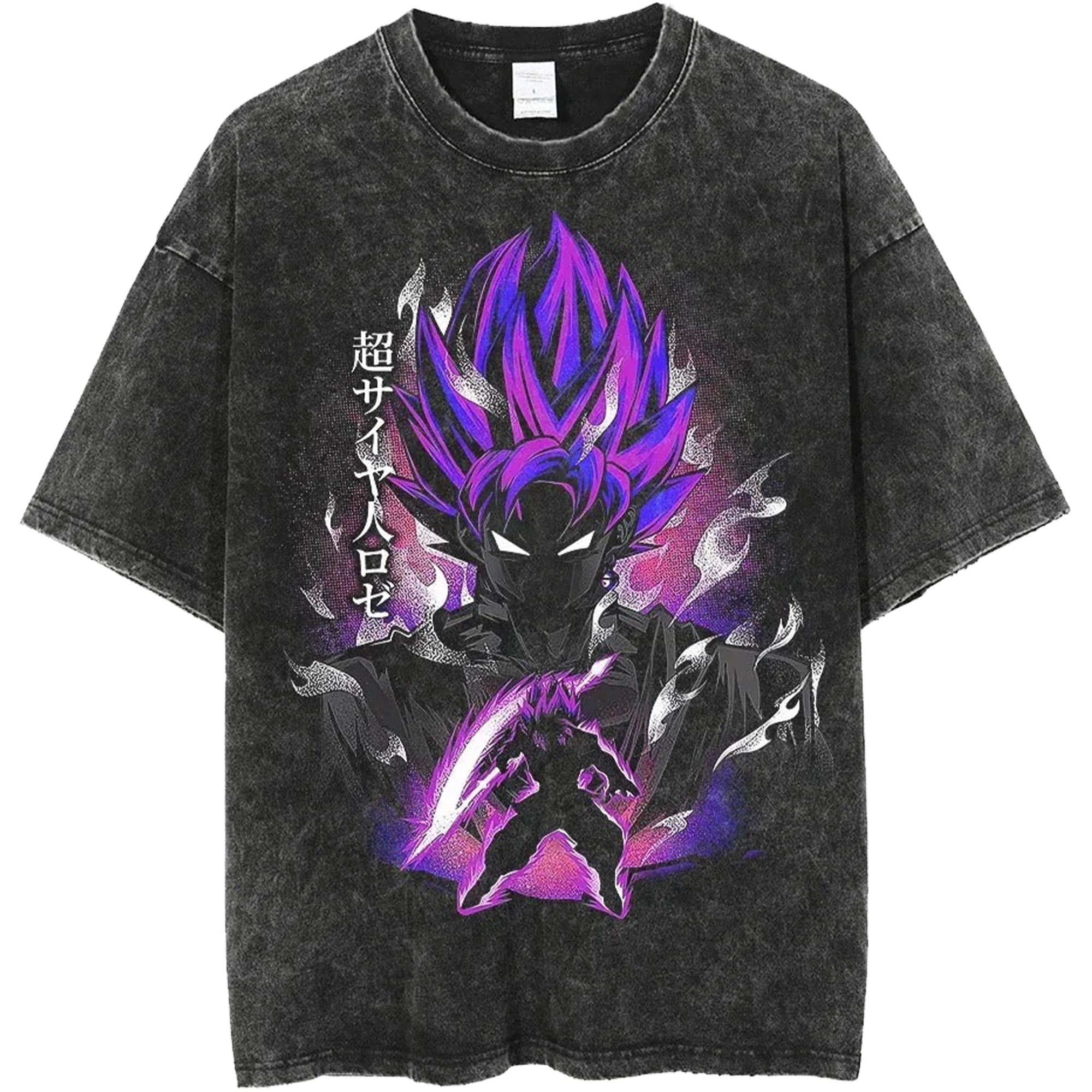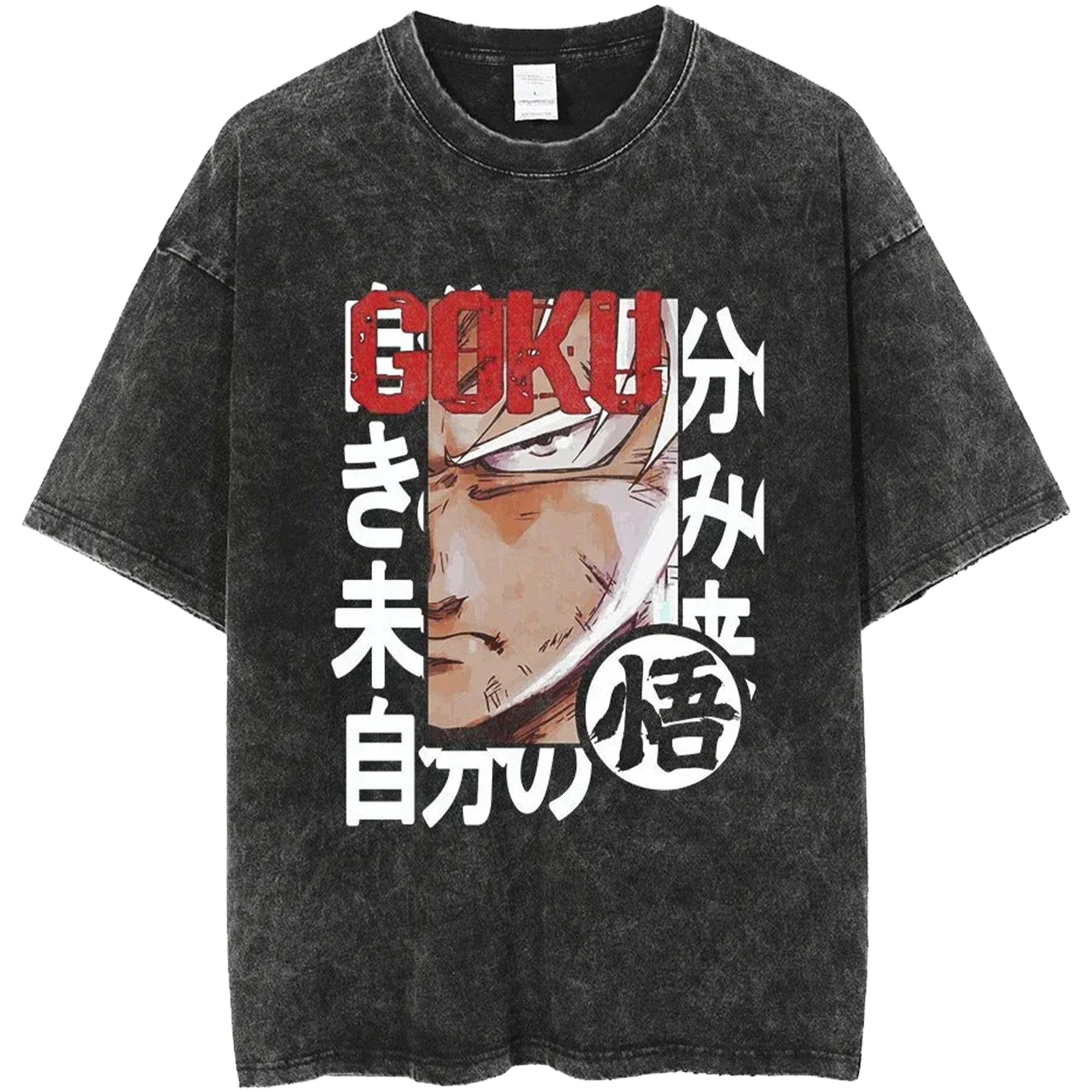 Anime Clothing Goku Saiyan Warrior Art Oversized Heavyweight Washed Tee, Manga Vintage Streetwear Graphic Shirt