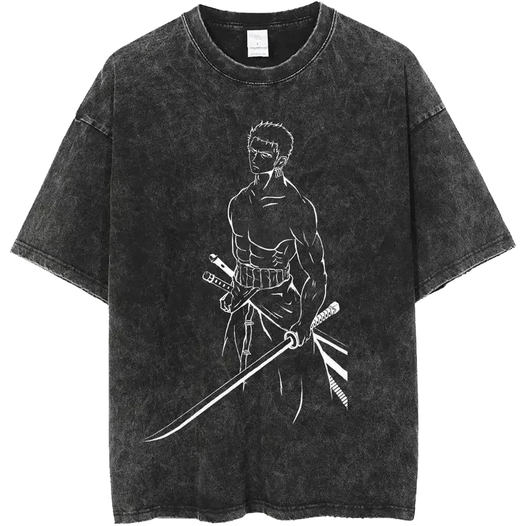 Anime Clothing Kurohige One Piece Heavyweight Oversized Washed T-Shirt – Retro Manga Streetwear Vintage Tee