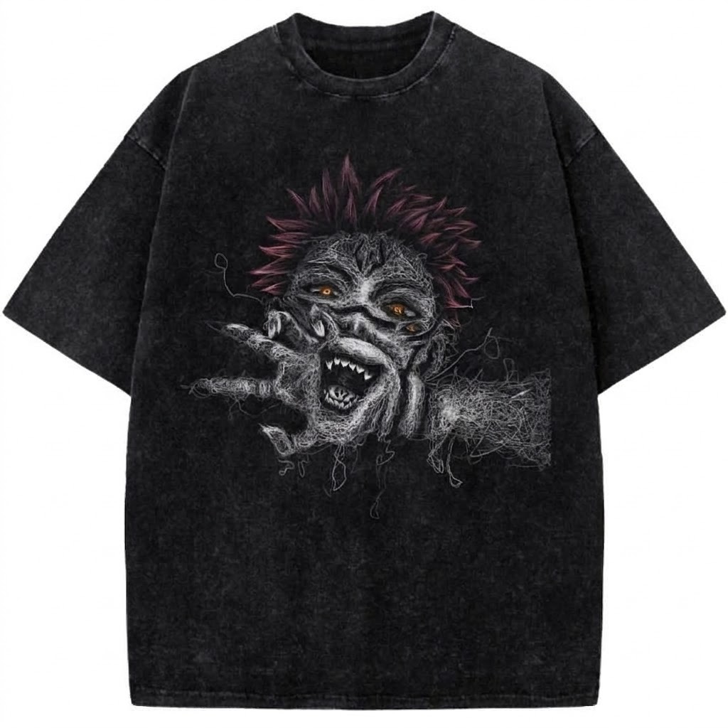 Anime Dark Lord Graphic Vintage Washed T-Shirt Manga Streetwear Tee