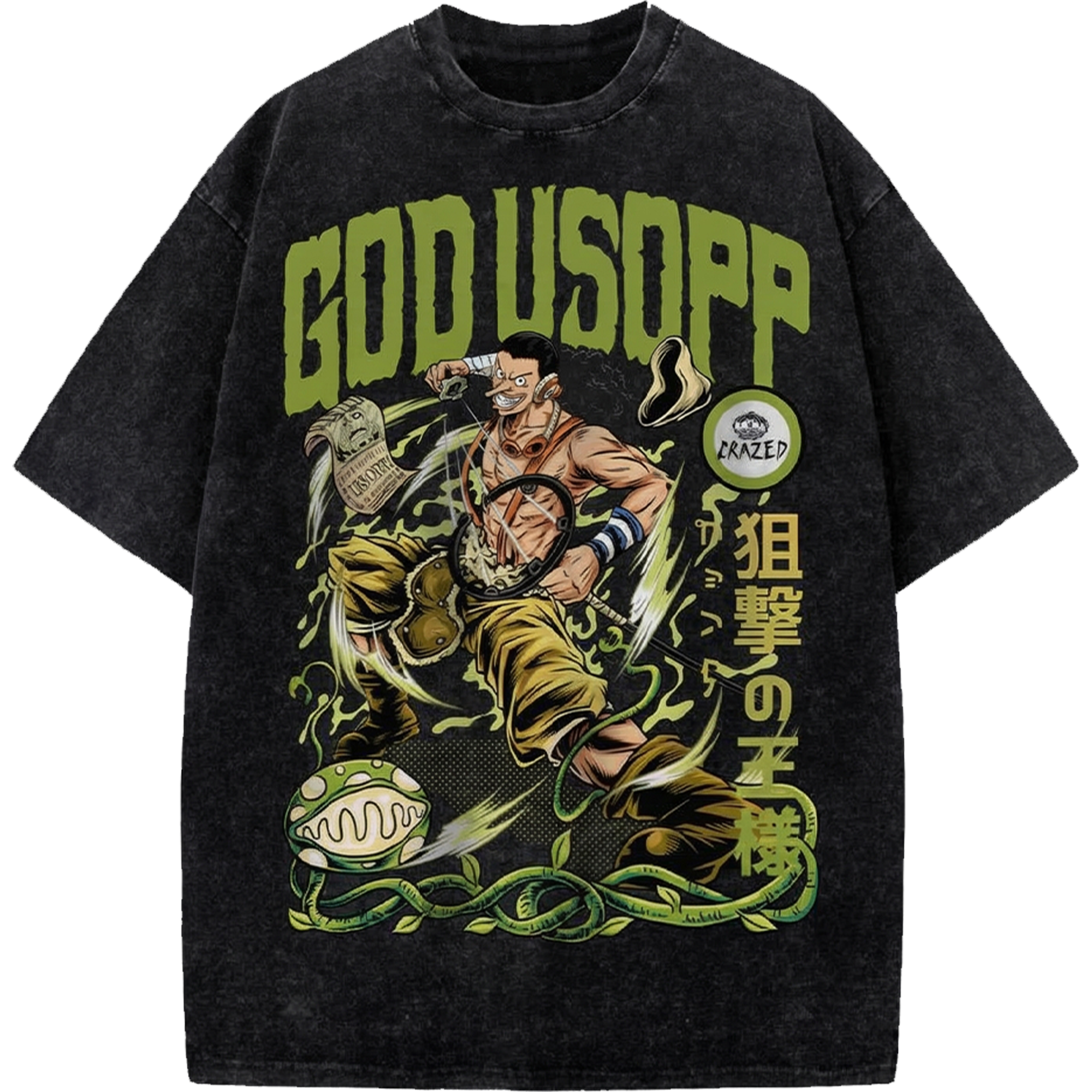 Usopp Anime Vintage Washed Shirt, One Piece Manga Streetwear T-Shirt Japanese Distressed Oversized Tee
