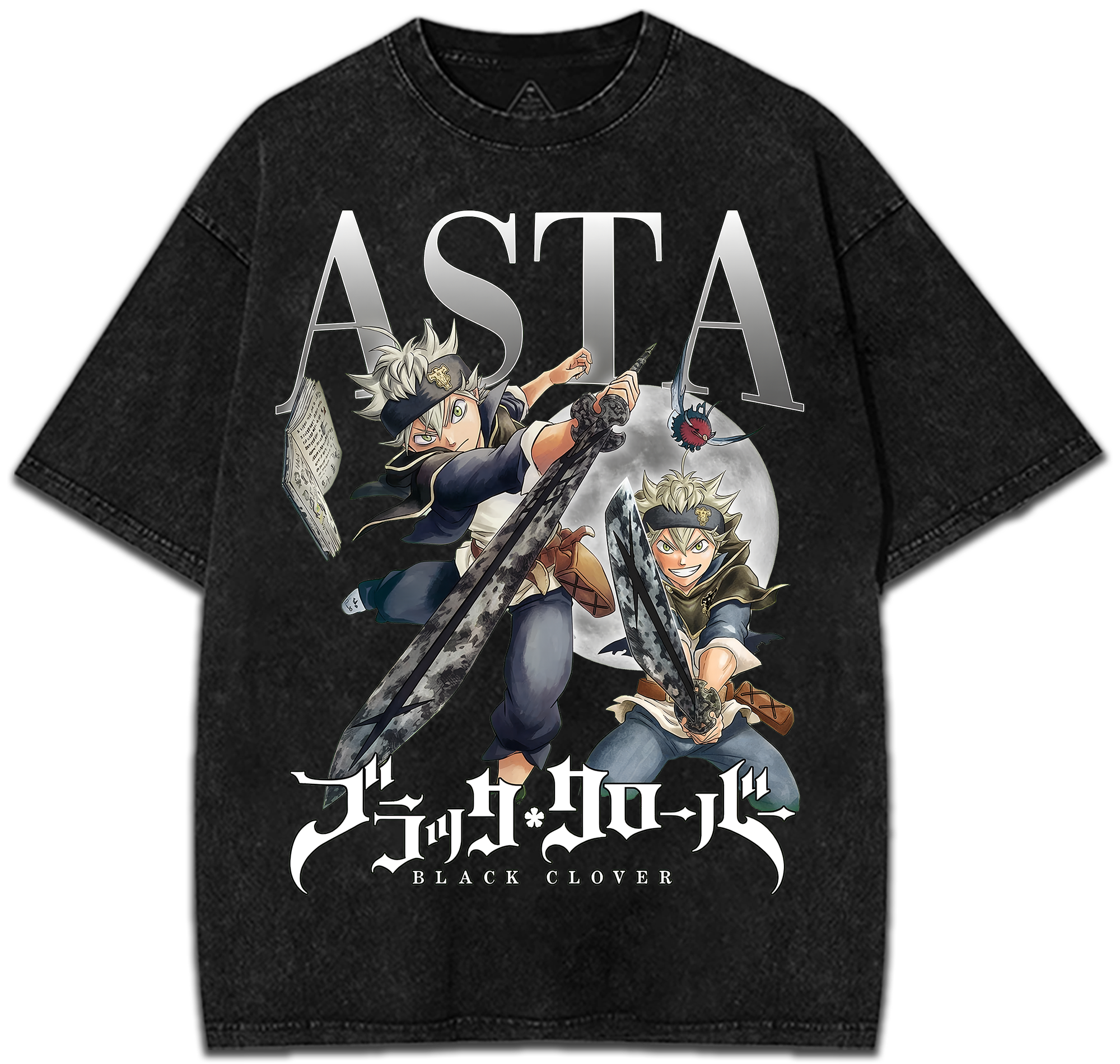 Anime Clothing Asta Black Clover Vintage Washed Oversized T-Shirt