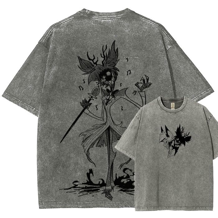 Adam Hazbin Hotel Angel Anime Vintage Washed T-Shirt – Fallen Angel Graphic Acid Wash Tee