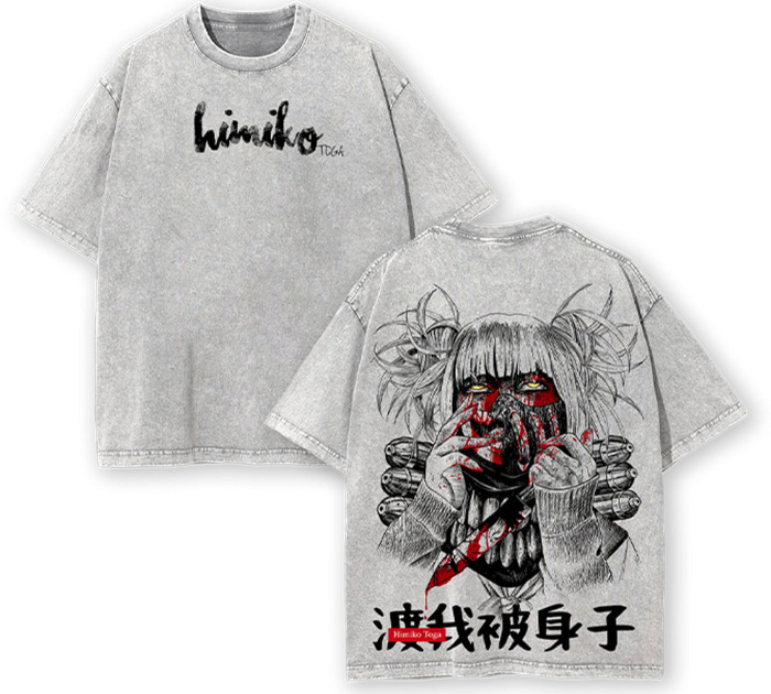Anime Fan Apparel My Hero Academia Toga Himiko Vintage Washed Shirt, Retro Manga Streetwear Oversized Tee