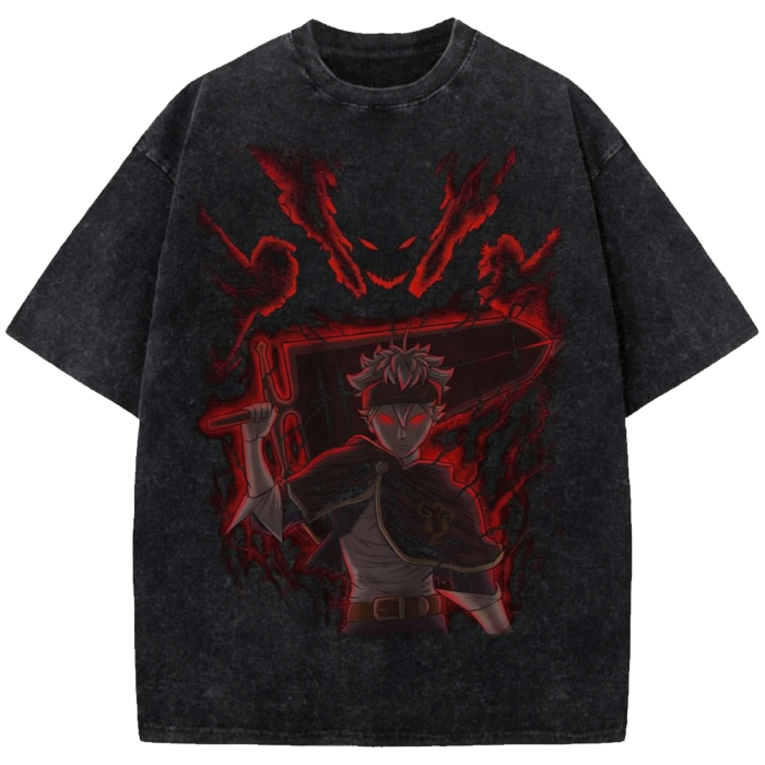 Asta Anime Oversized Washed Shirt, Black Clover Vintage Distressed Tee Japanese Manga Streetwear T-Shirt