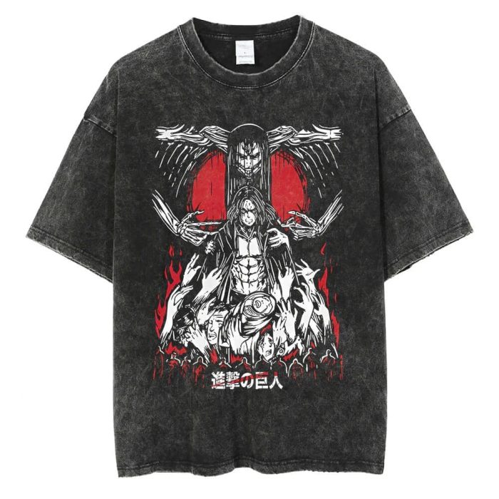 Attack On Titan Dark Vintage Washed Anime Graphic Tee AOT Manga Gothic Streetwear T-Shirt