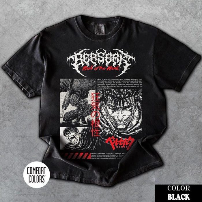 Berserk Guts Black Swordsman Anime Manga Vintage Washed T-Shirt Dark Fantasy Graphic Tee