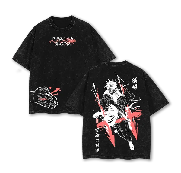 Choso Jujutsu Kaisen Blood Manipulation Double Printed Vintage Washed Oversized Anime Manga Graphic T-Shirt