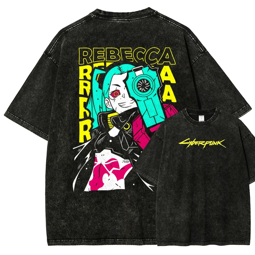 Cyberpunk Edgerunners Rebecca Urban Streetwear Washed T-Shirt
