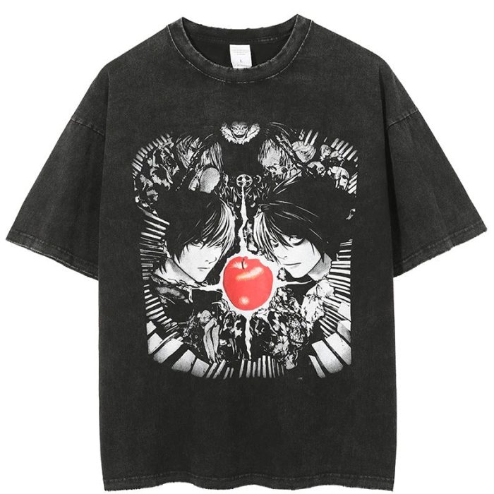 Death Note Apple Anime Vintage Washed T-Shirt Dark Manga Graphic Streetwear Tee For Anime Fans