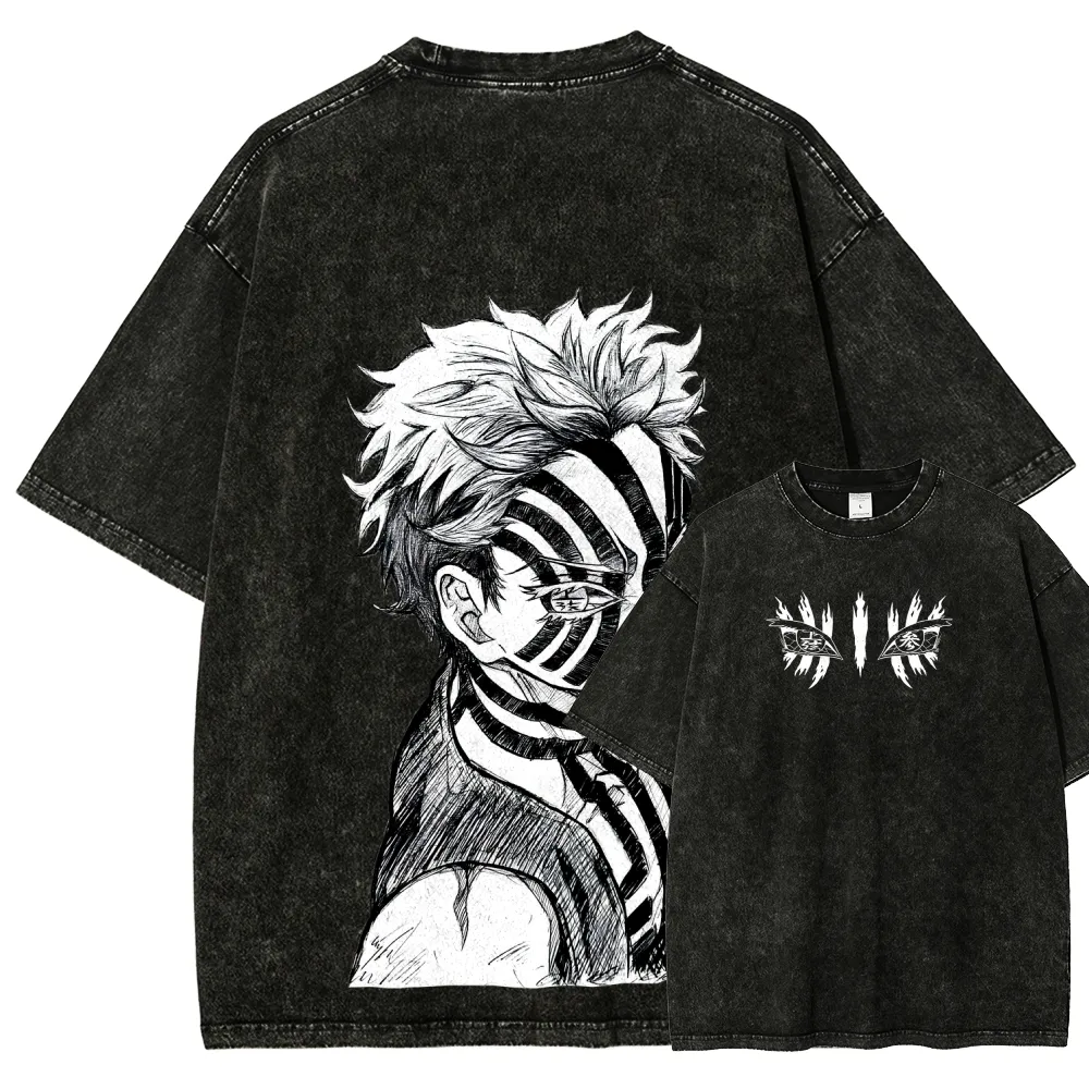 Akaza Anime Vintage Washed Shirt, Demon Slayer Manga Streetwear Tee Anime Oversized T-Shirt