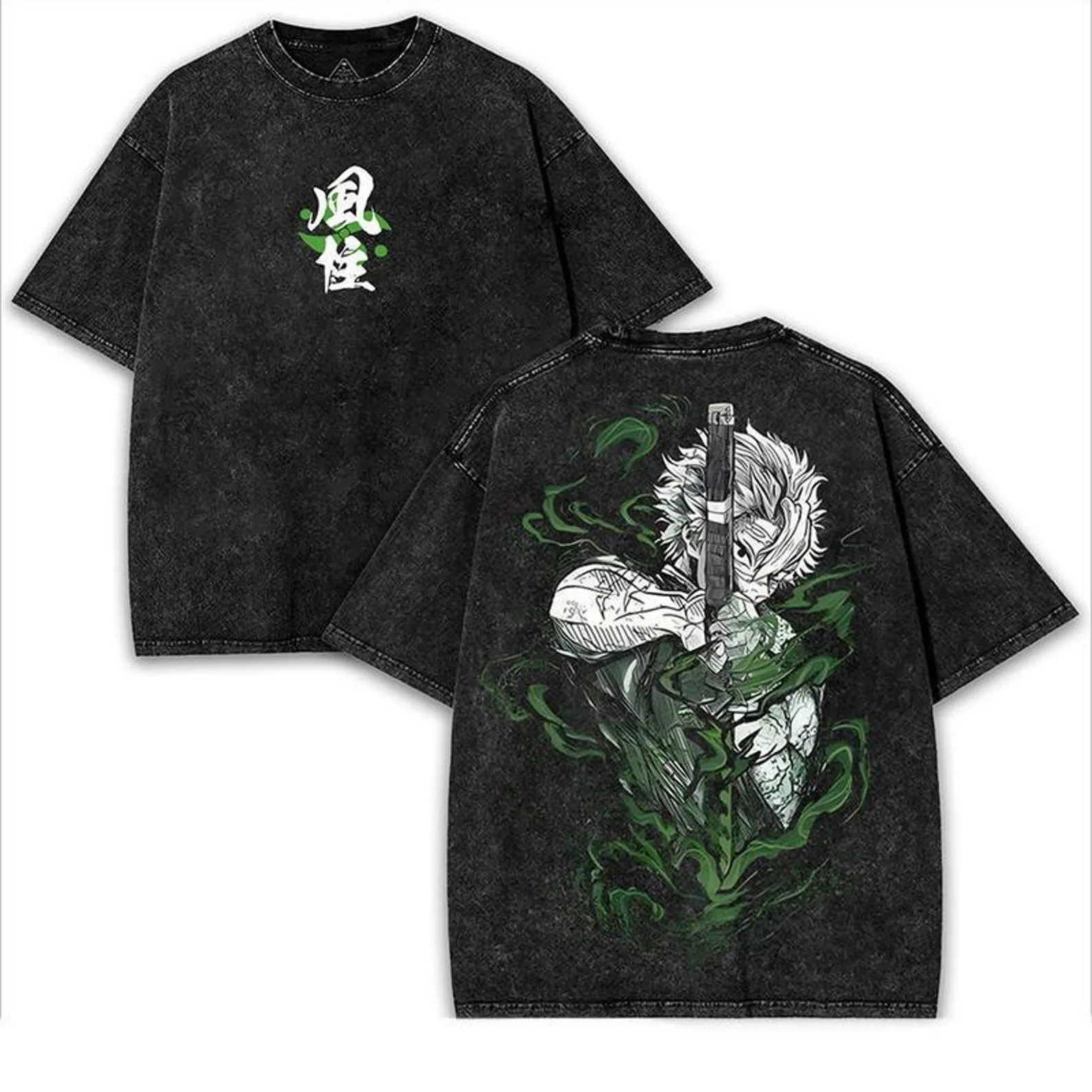 Demon Slayer. Anime Vintage Washed Tee, Green Aura Samurai Graphic Shirt, Gift For Anime Fan