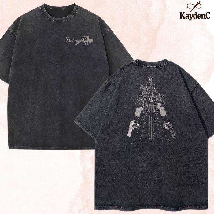 Devil May Cry Dante Anime Game Vintage Washed T-Shirt Devil Arms Graphic Tee
