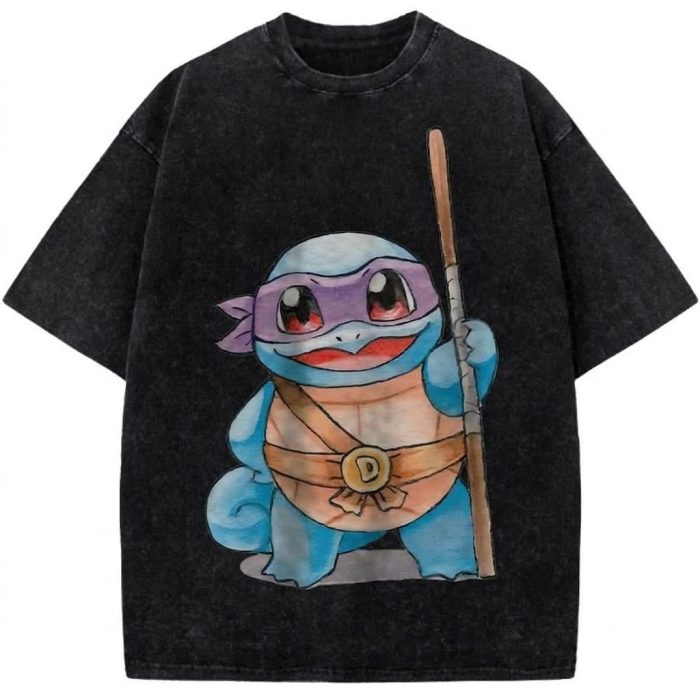 Donatello Squirtle Parody Vintage Washed Tee Ninja Turtle Pokémon Mashup Graphic Streetwear T-Shirt