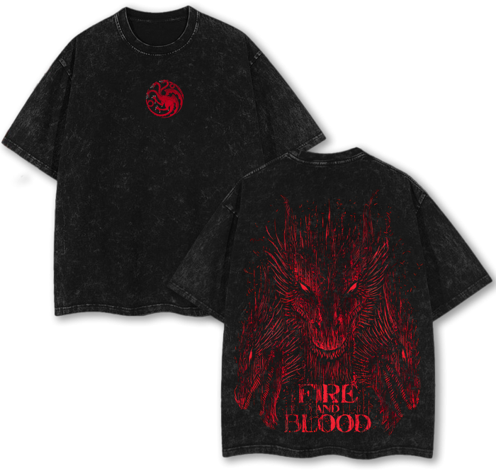 Drogon – Fire and Blood Anime Vintage Washed Tee Manga Streetwear Oversized Shirt