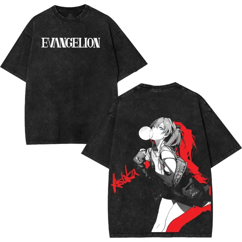 Evangelion Asuka Langley Washed Anime T-Shirt – Streetwear Manga Tee, Oversized Anime T-Shirt