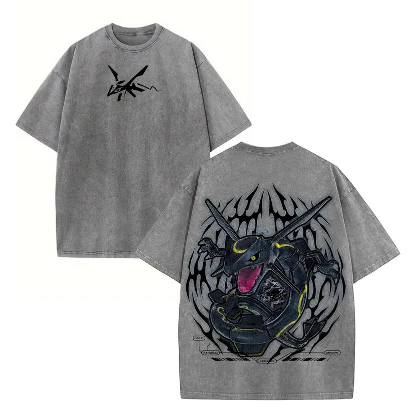 Rayquaza Anime Vintage Oversized T-Shirt – Acid Wash Heavyweight Cotton Graphic Tee