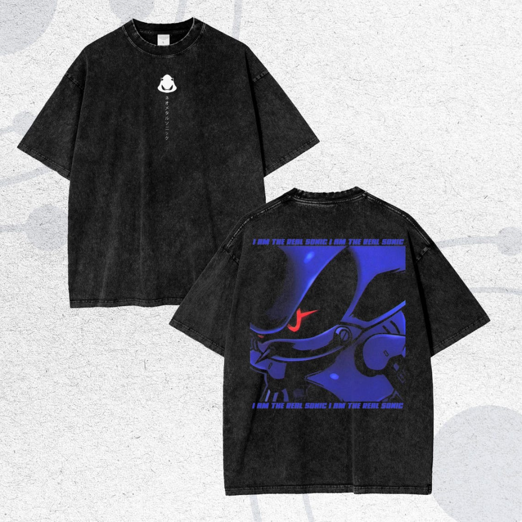 Metal Sonic Anime Oversize Acid Washed T-Shirt Sonic the Hedgehog Tee Gift For Him