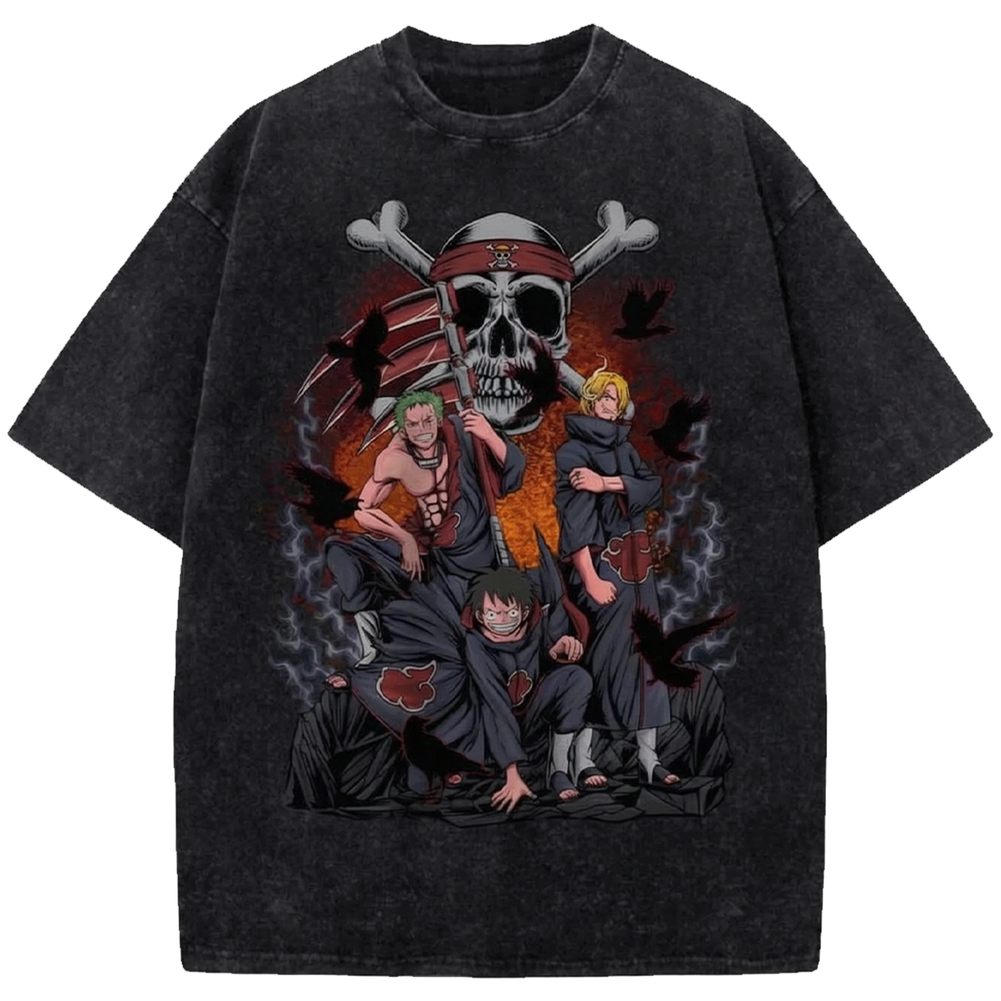 Akatsuki x One Piece Anime Vintage Washed Shirt, Manga Streetwear T-Shirt Japanese Distressed Oversized Tee
