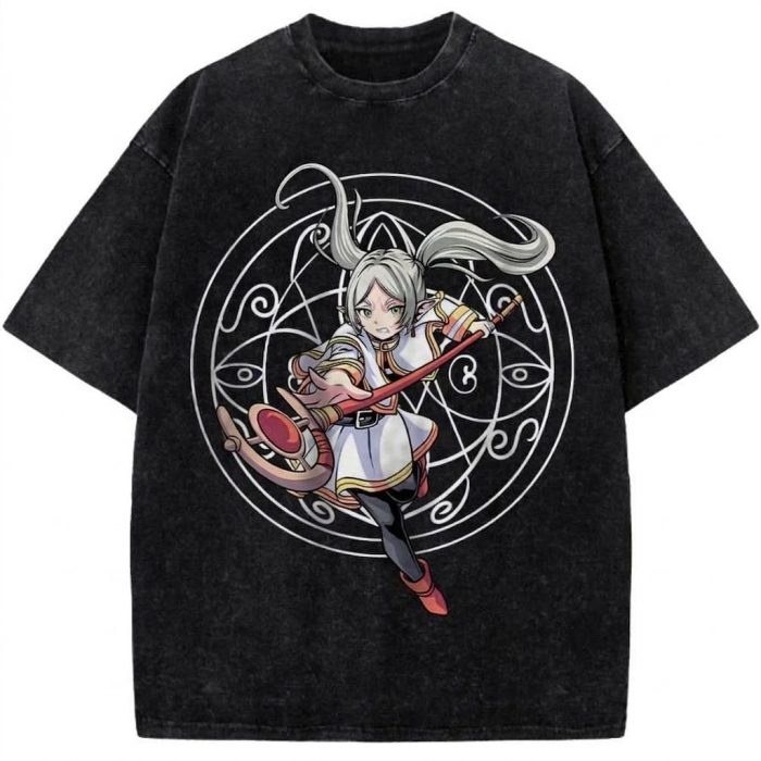 Frieren Beyond Journey’s End Anime Mage Graphic Vintage Washed T-Shirt Retro Fantasy Anime Tee