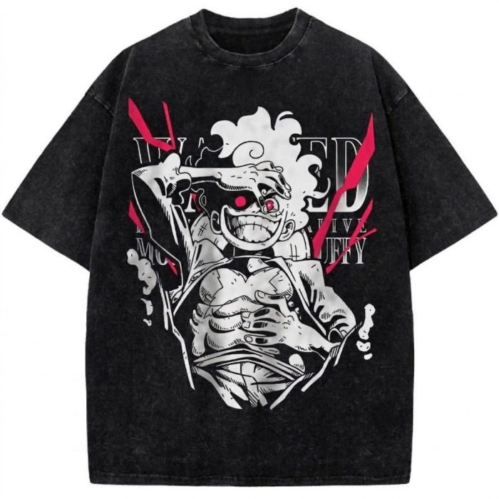 Gear 5 Luffy One Piece Anime Vintage Washed T-Shirt Nika Awakening Manga Style Graphic Tee