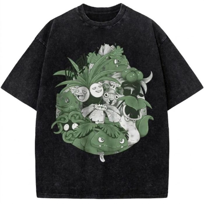 Green Plant Monster Squad Anime Vintage Washed Tee Nature Creature Graphic T-Shirt