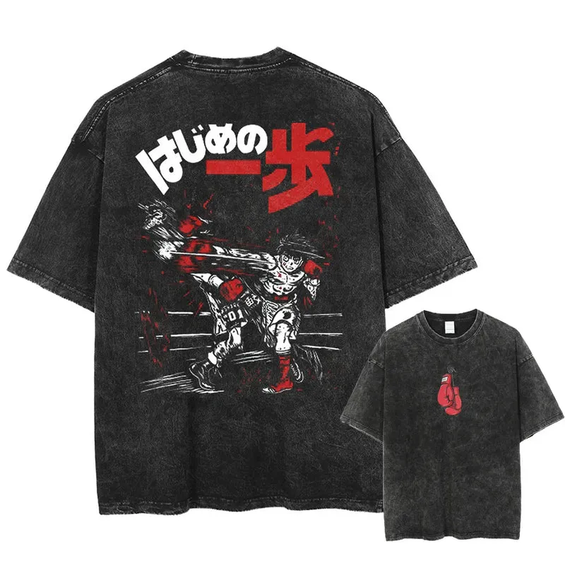 Hajime No Ippo Knockout Punch Anime Washed T-Shirt – Vintage Graphic Tee