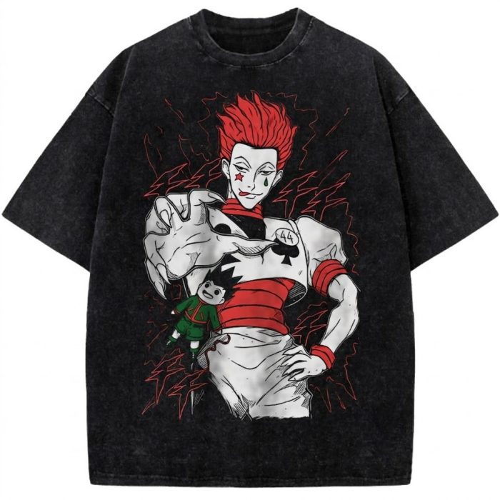 Hisoka Hunter x Hunter Vintage Washed Anime Tee Phantom Troupe Joker Graphic Streetwear T-Shirt