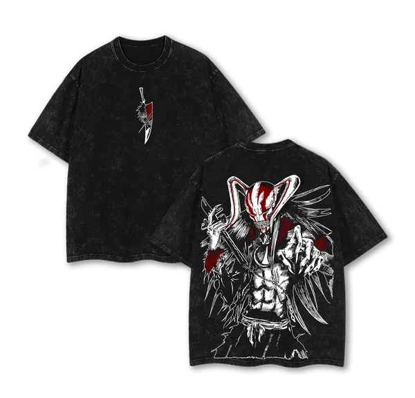 Ichigo Hollow Mask Bleach Anime Vintage Washed T-Shirt Soul Reaper Manga Graphic Tee Oversized Streetwear