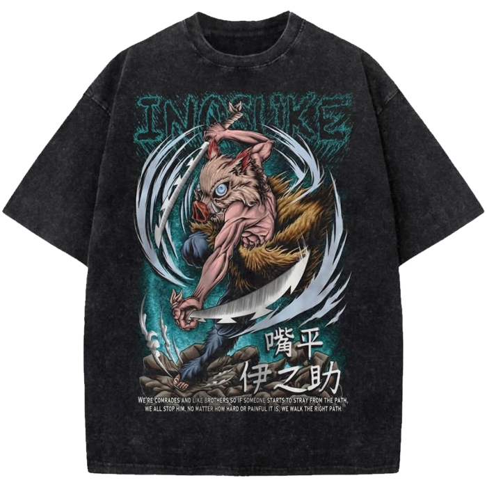 Inosuke Hashibira Demon Slayer Vintage Washed Oversized Shirt – Retro Anime Manga Graphic Streetwear Tee