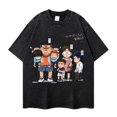 Japanese Anime Q Version Cartoon Print Vintage Washed Oversized Streetwear Graphic T-Shirt