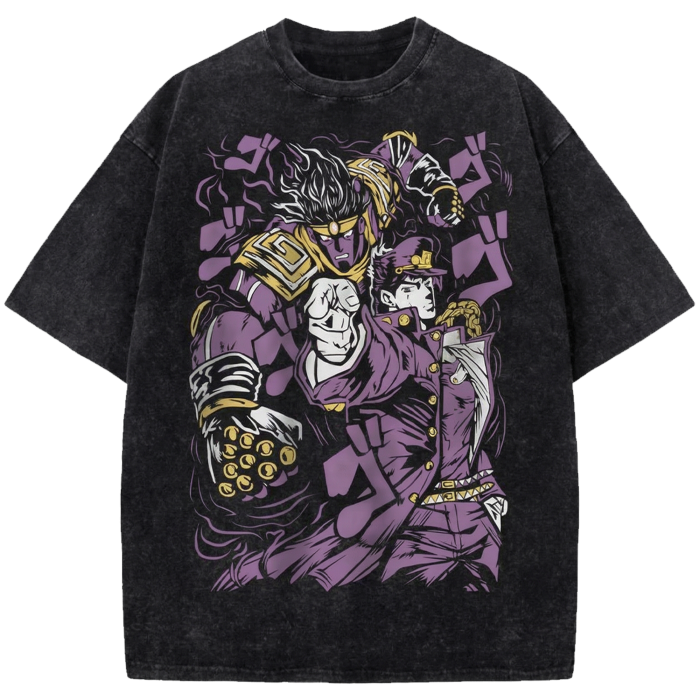 Jotaro Kujo Anime Oversized Washed Shirt, JoJo’s Bizarre Adventure Vintage Distressed Tee Japanese Manga Streetwear T-Shirt